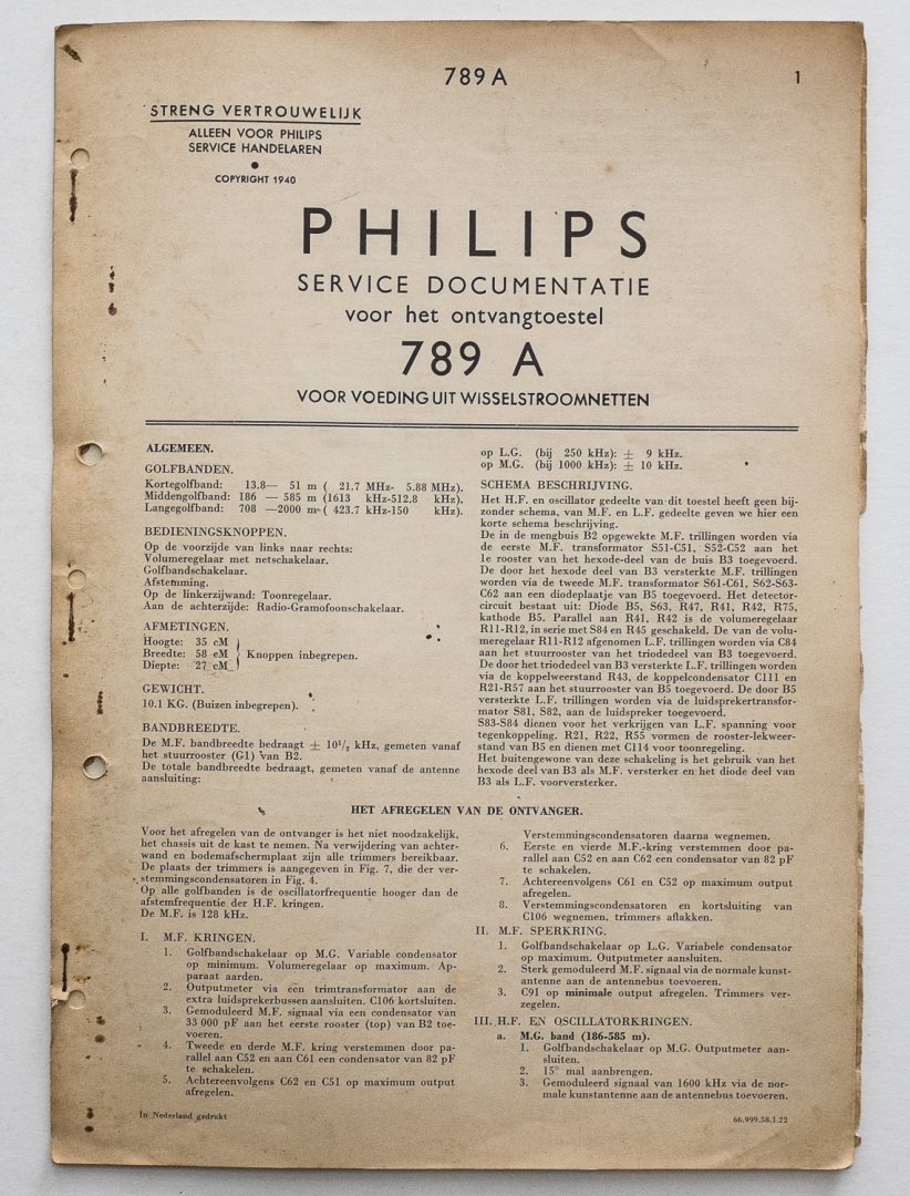 | Titel: | Philips service documentatie - voor het ontvangtoestel 789A - voor voeding uit wisselstroomnetten |