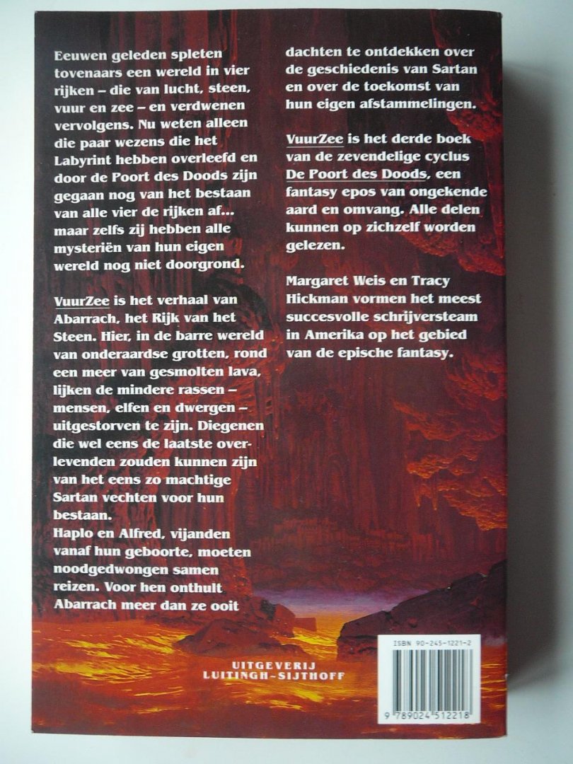 Vuurzee is het verhaal van Abarrach, het Rijk van het Steen. Hier in de barre wereld van onderaardse grotten vechten de laatste overlevenden van het eens zo machtige Sartan wanhopig voor hun bestaan. Verkenner Haplo trekt door Abarrach en tijdens zijn onthullende reis ontdekt hij meer dan ooit over de geschiedenis en de toekomst van Sartan en haar bewoners... |