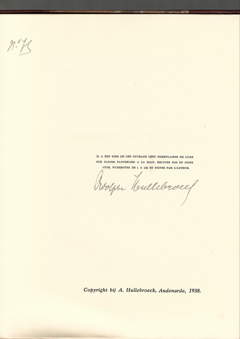 Hullebroeck, Adolphe - Histoire de la Tapisserie a Audenarde du