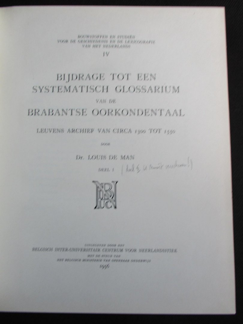 Man, Louis De - Glossarium van de Brabantse oorkondentaal.