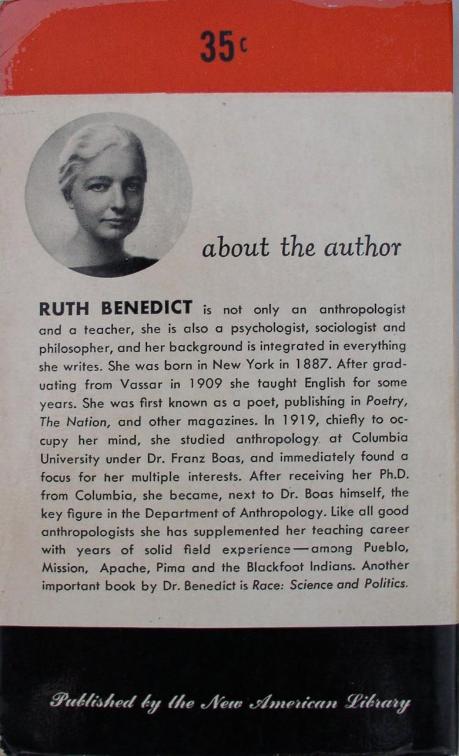 | Bijzonderheden: | June 1948 fourth printing ( First Mentor Books Edition M2 ) with an introduction by Franz Boas .paperback pocketsize softover 108 x 180 x 14 mm. 272 pg., weight 160 gr. |