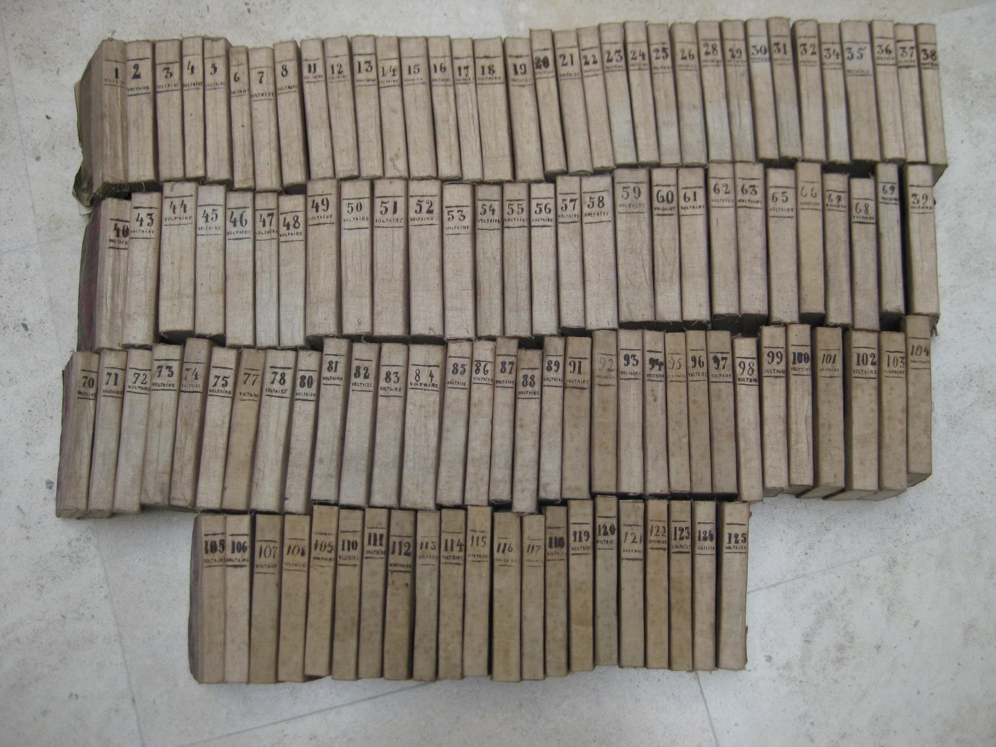| Bijzonderheden: | In 125 boekdelen. 14x9 cm. Genaaid. Rug met ruw linnen verstevigd. Het merendeel de platten verstevigd met gemarmerd papier. Volgnummer met handschrift op de rug. Enkele deeltjes wat loszittende katernen. |