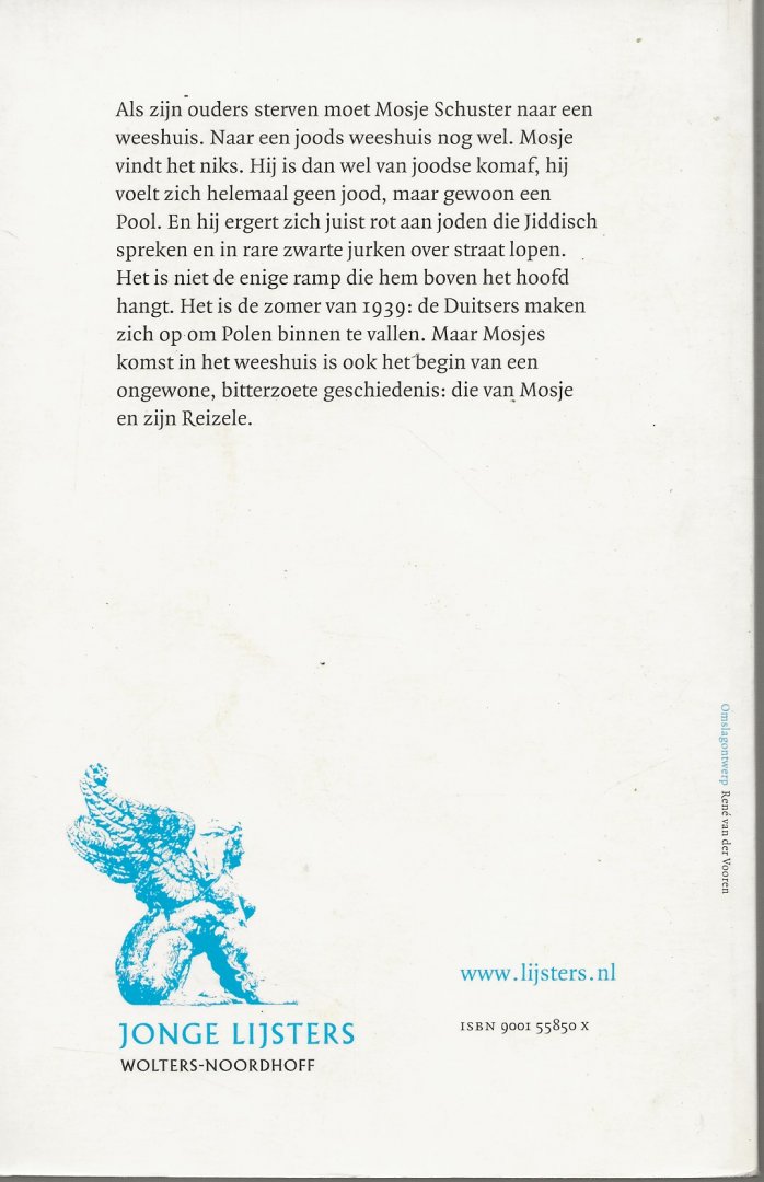 Mosje Schuster is een Pool. Hij ergert zich aan die joden die Jiddisch spreken en in 'rare zwarte jurken' over straat lopen. Hij lacht de zionisten uit die zo dolgraag die gloeiende woestijn waar niets groeit willen gaan ontginnen. Mosje Schuster is een Pool die naar een Poolse school gaat. Maar als zijn ouders sterven moet Mosje toch naar 'Het Instituut': het joodse weeshuis dat de beroemde dokter Korczak in 1911 in Warschau heeft gesticht. Die Janusz Korczak woont er zelf trouwens ook.Gepokt en gemazeld door het leven heeft Mosje de zwartste voorstellingen van dit instituut. 'De riem gebruiken ze voor de echte straf, en oorvijgen gewoon voor tussendoor.' Het is de zomer van '39: de Duisters maken zich op om Polen binnen te vallen. Het is ook het begin van een ongewone geschiedenis: die van Mosje en Reizele.''Karlijn Stoffels' Mosje en Reizele is een even ontroerend als sterk geschreven debuut.'' - Lieke van Duin in Trouw''Mosje en Reizele is dankzij de jongensachtige, zich altijd groot houdende Mosje, met zijn opstandig laconieke toon, allesbehalve een sentimenteel boek. Toch is het eigenlijk daarom juist een emotioneel en pijnlijk boek.'' - Marjoleine de Vos in NRC Handelsblad''Tot aan het einde toe houdt Mosje Schuster zijn afstandelijkheid, zijn gortdroge commentaren, zijn humeurige gezichtspunt vol. Naast al die emotie, poezie en spanning doet dat het boek buitengewoon veel goed. En overigens heeft het ook een happy end, dat van alle gruwel en treurnis niets wegneemt, maar dat de lezer wel een paar troostende tranen gunt.'' - Konrad Heikamp in Die Zeit