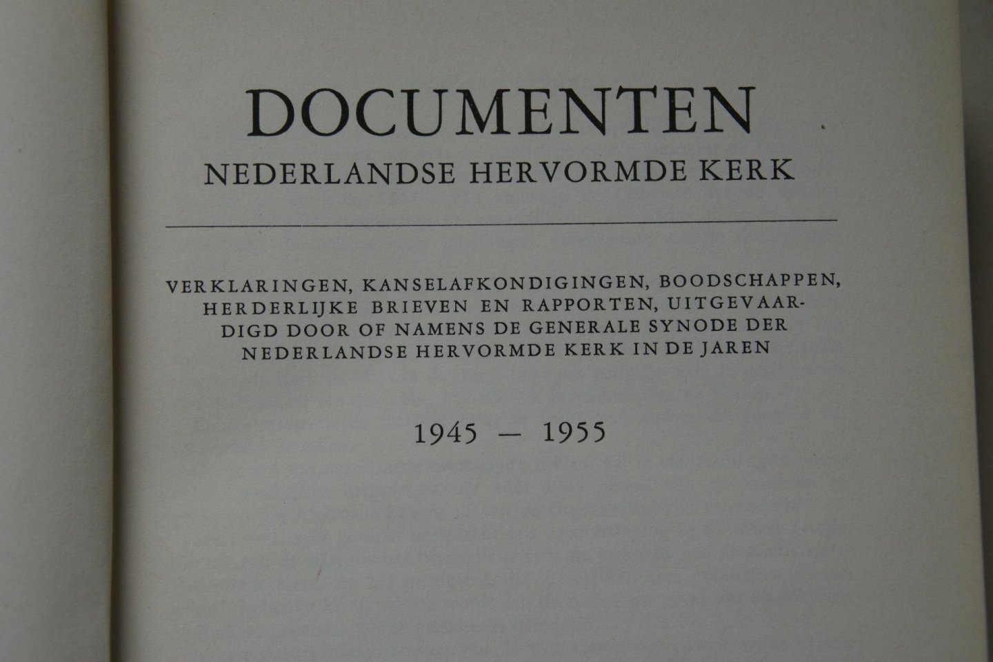 | Titel: | Documenten Nederlandse Hervormde Kerk 1945 - 1955 Verklaringen, kanselafkondigingen, boodschappen, herderlijke brieven en rapporten, uitgevaardigd door of namens de Generale Synode der Nederlandse Hervormde |