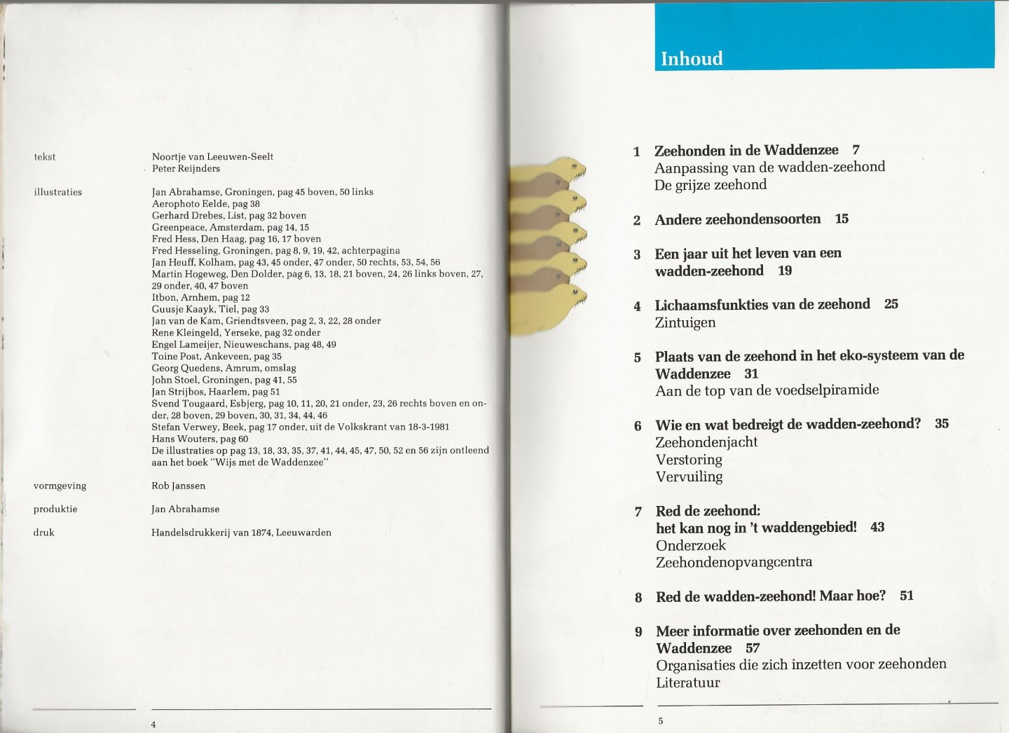 In dit boekje wordt nog eens goed gezegd wat eigenlijk wel bekend is, n.l.: De bedreiging van het leven van de waddenzeehond door vervuiling en verstoring van het Waddengebied is een symbool voor de bedreiging van het menselijk bestaan. Op zakelijke en prettig leesbare wijze wordt verteld over de afkomst, het leven en de toekomst van de zeehond. Mooie, instructieve tekeningen en foto's begeleiden de tekst. Geen wetenschappelijke uiteenzetting, maar een goed verstaanbare en weloverwogen "noodkreet". Een boekje, dat de nodige gegevens verschaft aan een ieder die wil weten en aan anderen wil doorgeven, welke gevaren ons milieu bedreigen. Een boekje dat ruime verspreiding verdient in educatieve, maar vooral ook in politieke kringen. Vanaf ca. 12 jaar.