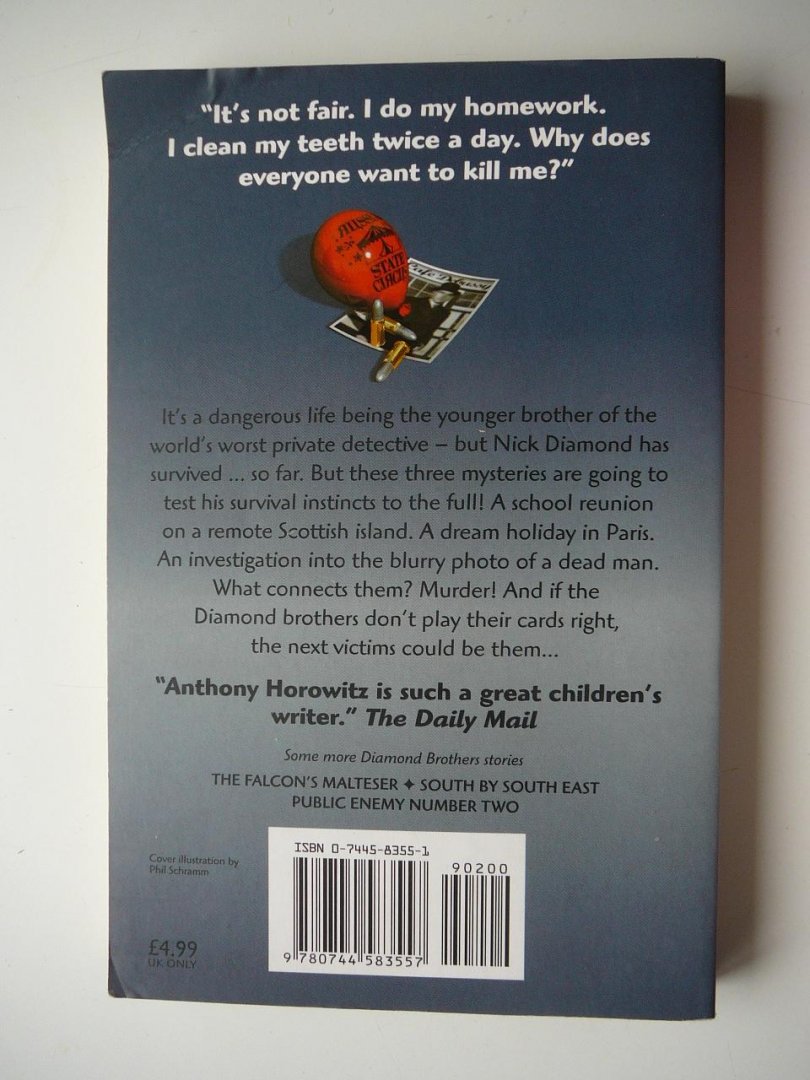 | Meer info: | Three hilarious mysteries from the "New York Times" bestselling author featuring the Diamond brothers--Tim, the world's worst private detective, and his quick-thinking brother Nick--are together in one volume. |