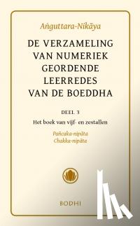 Annotatie Dit boek bevat de integrale Nederlandse standaardvertaling van het derde deel van de Anguttara-Nikaya, ‘De verzameling van numeriek geordende leerredes’ van de Boeddha. Flaptekst De Aṅguttara-Nikāya is in de traditionele telling – na de Dīgha-, de Majjhima-en de Saṃyutta-Nikāya – de vierde verzameling (nikāya) van de Sutta-Piṭaka: de ‘mand’ (piṭaka) van leerredes (sutta’s) die aan de historische Boeddha en zijn belangrijkste leerlingen worden toegeschreven. Deze verzameling maakt deel uit van de Pali-Canon en vormt samen met de Vinaya-Piṭaka (de ‘mand’ van de orderegels) en de Abhidhamma-Piṭaka (de ‘mand’ met scholastieke teksten) het corpus van gewijde geschriften van de Theravāda. Deze Pali-Canon of Tipiṭaka (‘drie manden’) bevat de oudste bewaard gebleven geschriften van de boeddhistische traditie. De hele Aṅguttara-Nikāya bestaat uit 11 boeken waarin 8122 sutta’s worden gerangschikt op grond van hun numerieke inhoud. Deze elf boeken bevatten leerredes die een oplopend aantal onderwerpen behandelen. Dit deel bevat de vertaling van het vijfde en zesde boek: ‘Het boek van de vijftallen’ en ‘Het boek van de zestallen’. Dat betekent dat het die sutta’s bevat die steeds over vijf en zes items gaan, zoals de vijf redelijke punten van kritiek waaraan een monnik of non zich blootstelt, als hij of zij de leerweg de rug toekeert en terugkeert naar het lagere leven; zoals de aanwezigheid van vijf eigenschappen die verhinderen dat men het slechte pad opgaat; zoals de vijf stadia bij het verkrijgen van bevrijdende kennis en visie. Bij de zestallen worden bijvoorbeeld aan de orde gesteld: de zes soorten van personen die allen andere karaktereigenschappen hebben en daardoor meer of minder geschikt zijn om de Leer te begrijpen en in de praktijk te brengen; en de zes gevolgen voor de spirituele ontwikkelingvan het al dan niet kunnen beheersen van de zintuigen. Zoals men ziet, zijn de onderwerpen van zeer uiteenlopende aard. Om toch enige ordening aan te brengen in het grote aantal sutta's is een 'thematische gids' toegevoegd waarin dertien thema's onderscheiden worden, die als het raamwerk beschouwd kan worden waarin de afzonderlijke sutta's een plaats vinden. |