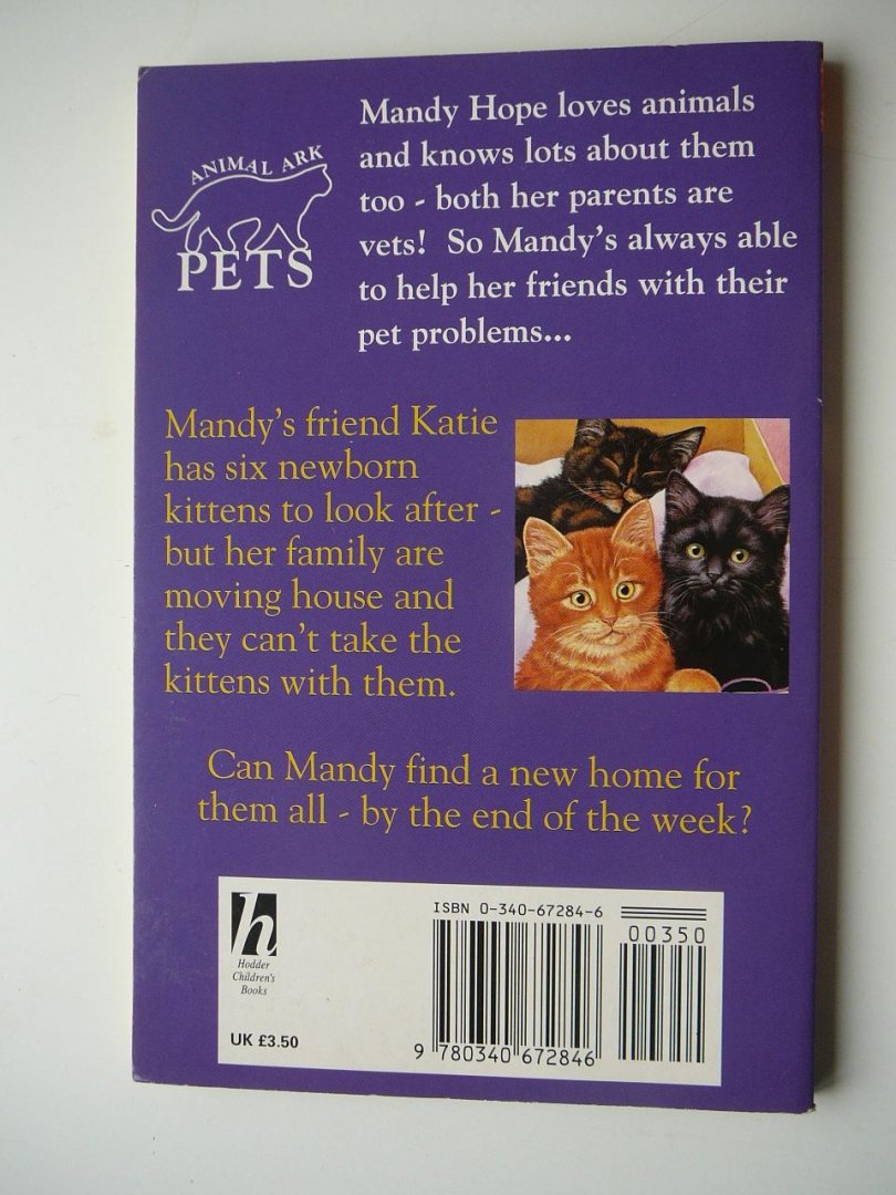 | Meer info: | Mandy, who loves trying to solve her friends' pet problems, promises to help Sarah find homes for her cat's six baby kittens before she moves house. Just as Mandy thinks she has found the perfect place - a local old people's home whose residents need cheering up - the kittens go missing. |