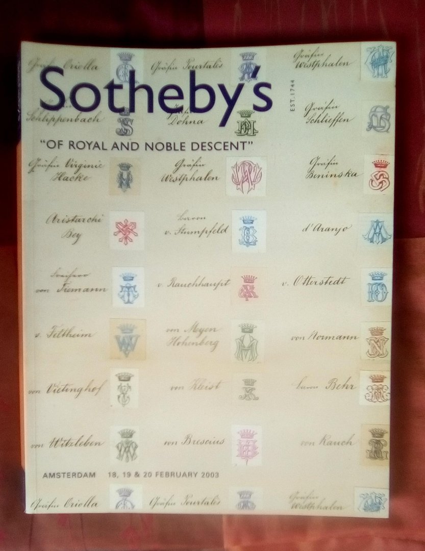 | Bijzonderheden: | Zwaar paberback gids veiling 'of royal and noble descent', Amsterdam 18, 19, 20 february 2003 Amsterdam |