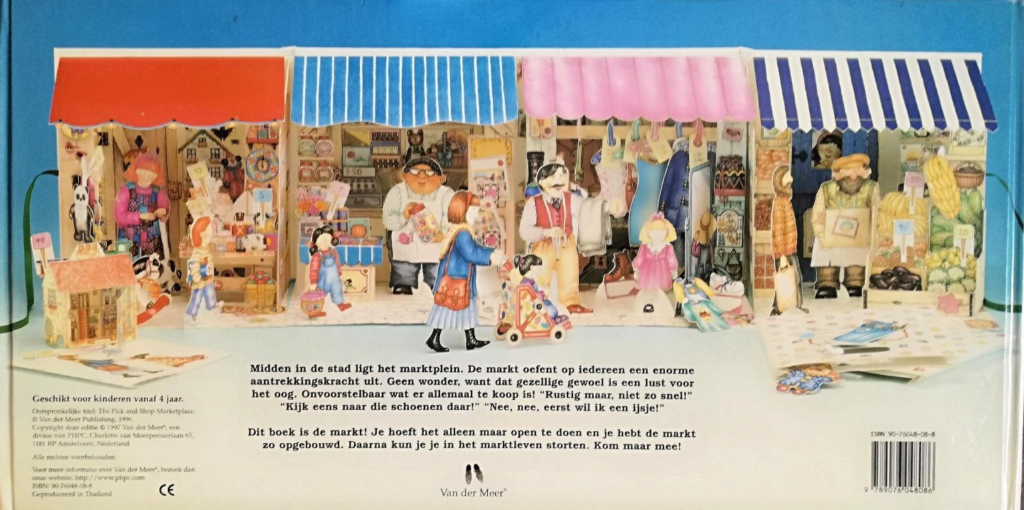 | Meer info: | - "Rustig maar niet zo snel kijk eens naar die schoenen daar !" "Nee, nee, eerst wil ik een ijsje! " Dit boek is de markt! Je hoeft het alleen maar open te doen en je hebt de markt zo opgebouwd. Daarna kun je je in het park leven storten. Kom maar mee ! |