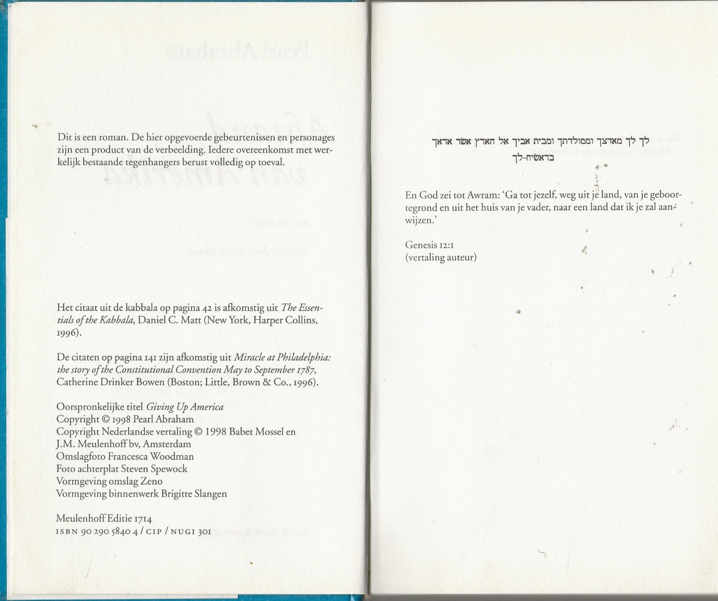Abraham, Pearl . Vertaald door Babet Mossel - Afstand van Ameri