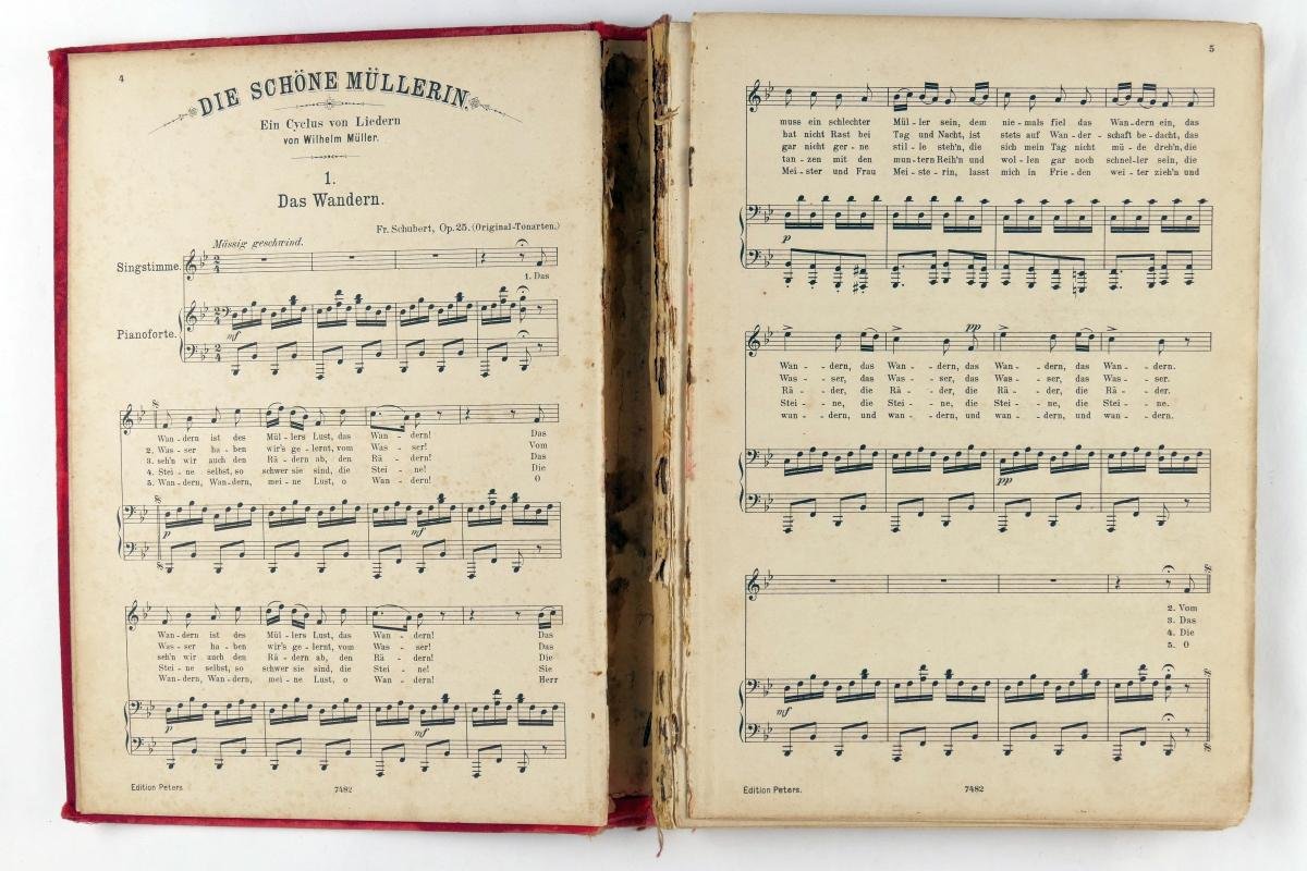 | Titel: | Schubert album. Sammlung der lieder fur eine singstimme mit pianofortebegleitung (3 foto's) |