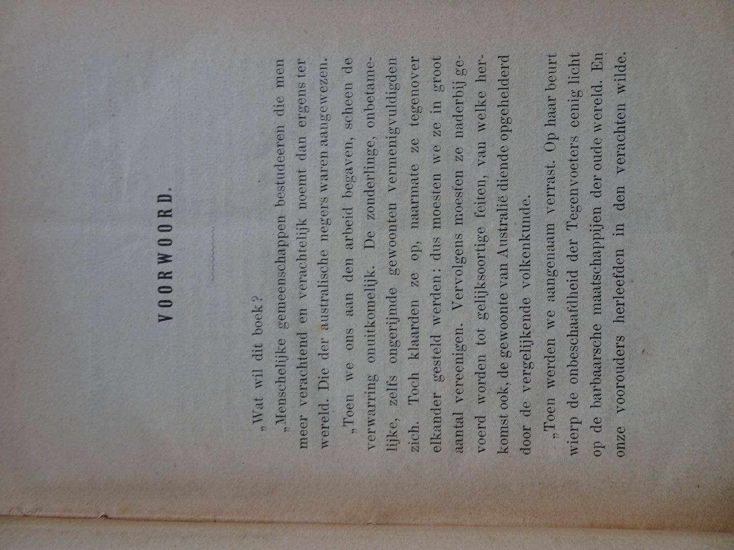 | Titel: | DE MENSCH VAN DEN AUSTRALISCHEN BODEM of De neen-neen’s en de ja-ja’s. Een studie van vergelijkende volkenkunde. Dayéris, Narrinyeris, Kamilaroïs, Minnal-yangs, Yirclas, Yarra-yarras, enz. |