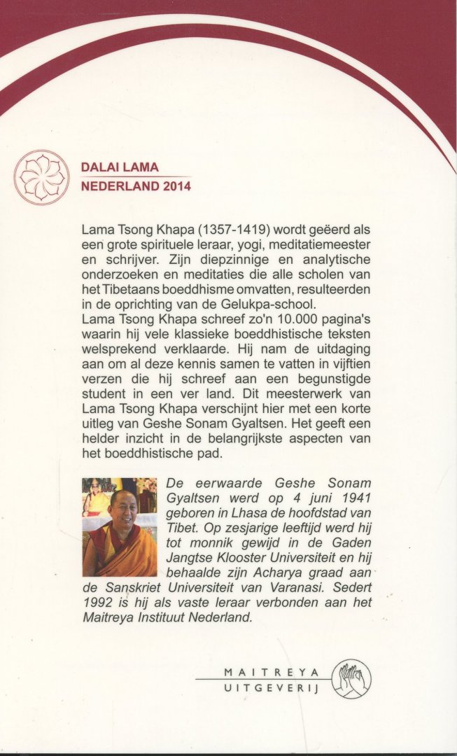 Speciale uitgave t.g.v. het bezoek van Z.H. de Dalai Lama aan Nederland op 11 mei 2014. Met een uitleg van Geshe Sonam Gyaltsen. Vertaling: Hans van den Bogaert. Ill.:Andy Weber. |