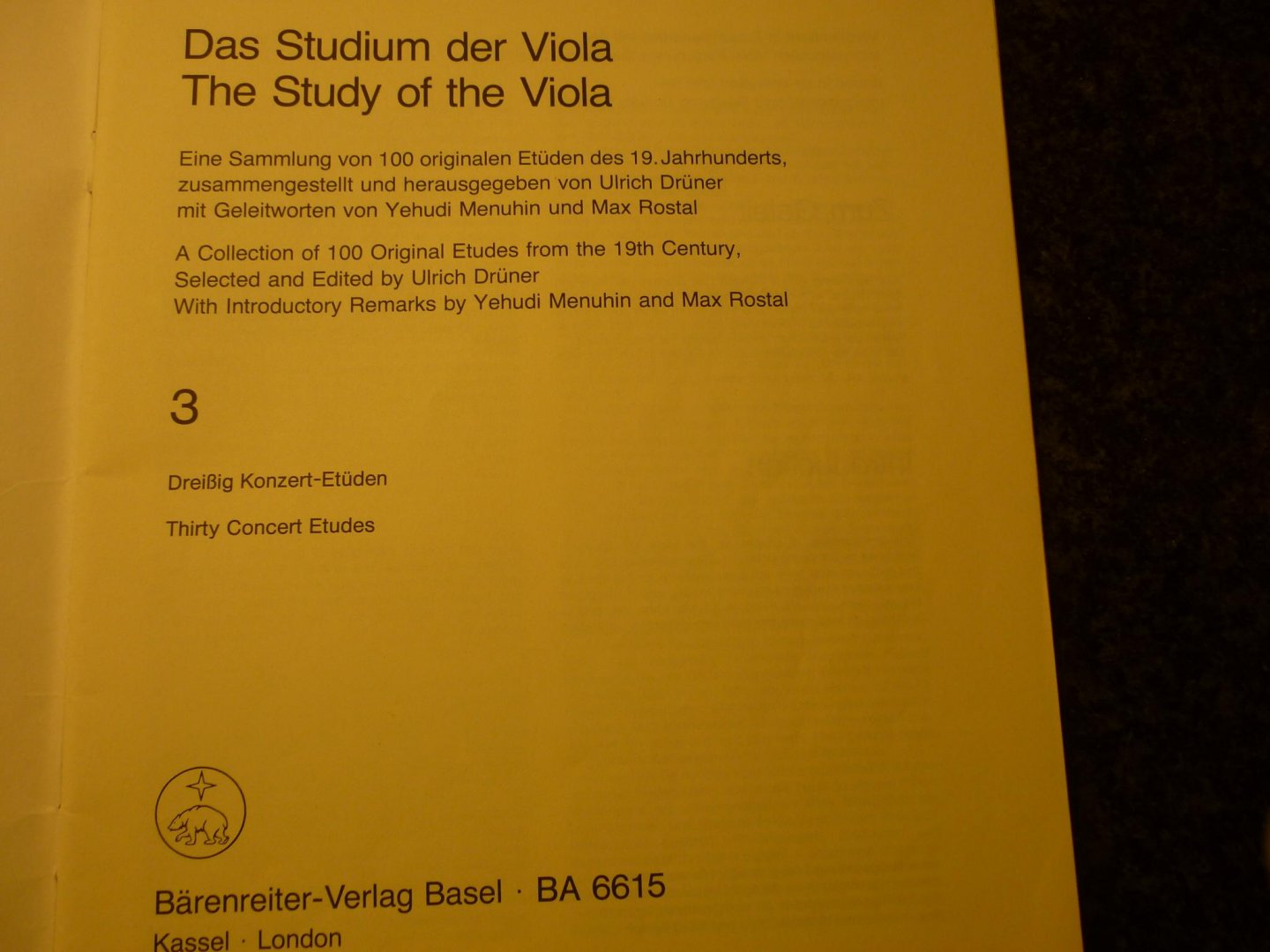 | Titel: | Das Stadium der Viola - 3; Dreizzig Konzert-Etuden; Eine Sammlung von 100originalen Etuden des 19. Jahrhunderts; Zusammengestellt / herausgegeben von Ulrich Druner |