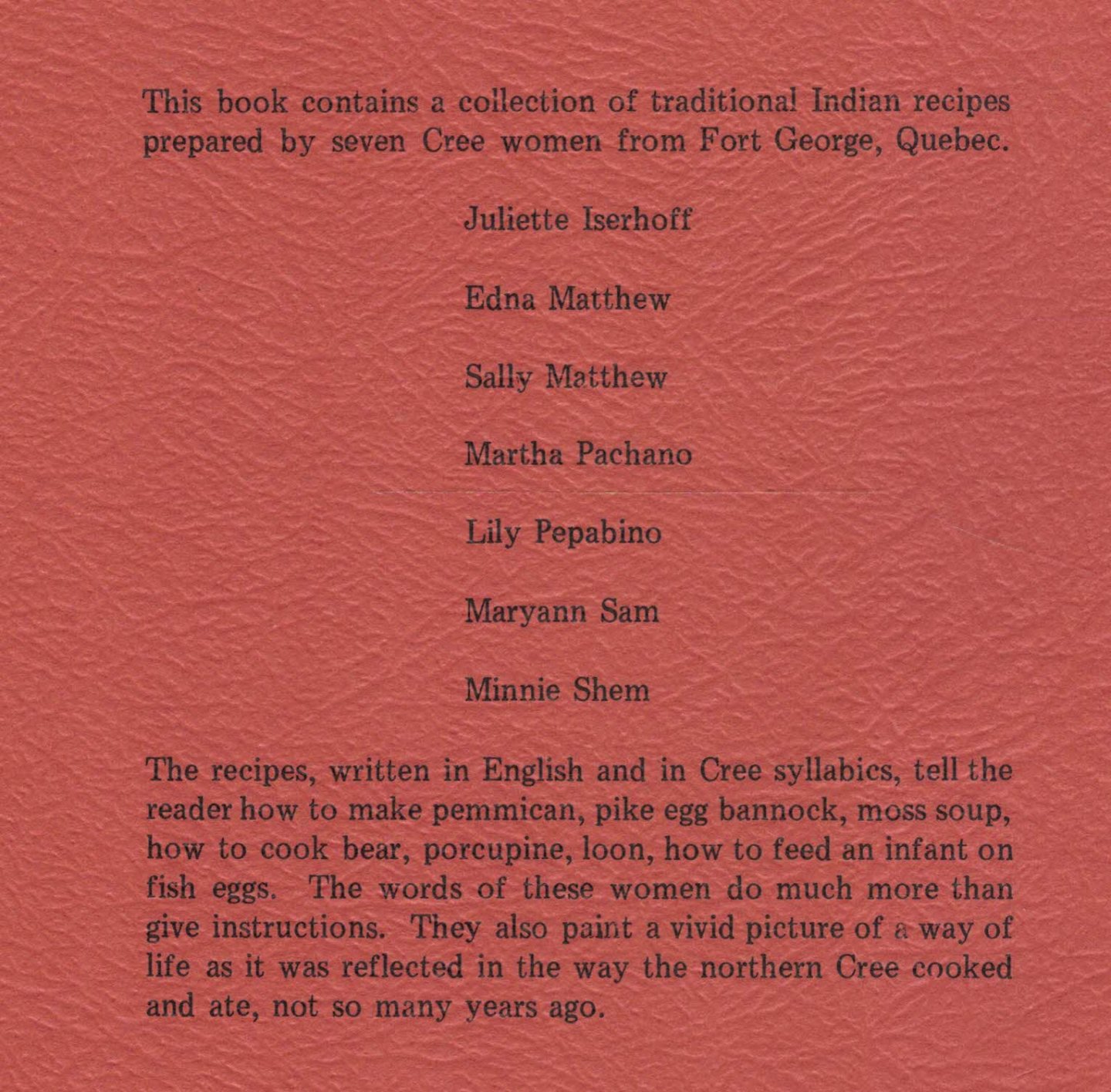 | Titel: | Traditional Indian Recipes from Fort George, Quebec |