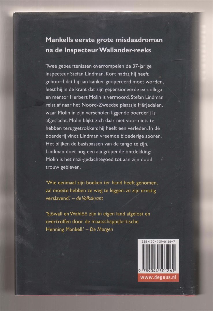 De terugkeer van de dansleraar De Geus, Breda. 2000. Eerste druk. Gebonden (harde band). Gekartonneerde band met zilveren titelopdruk op rug. Met stofomslag. 507 pp. 13¾ x 20½ x 4½ cm. 634 gr. Oorspronkelijke titel 'Danslärarens återkomst, 2000'. Uit het Zweeds vertaald door Ydelet Westra. Omslagillustratie Carlos Goldini/Corbis/TCS. Foto auteur Ulla Montan. ISBN-10 90 445 0126 7. ISBN-13 978 90 445 012 1. Twee gebeurtenissen overrompelen de 37-jarige politie-inspecteur Stefan Lindman. Op het moment dat hij van zijn arts hoort dat hij kanker heeft, leest hij in de krant dat zijn gepensioneerde ex-collega en mentor Herbert Molin is vermoord. Lindman reist af naar het Noord-Zweedse plaatsje Härjedalen, waar Molin in zijn verscholen liggende boerderij is afgeslacht. Molin blijkt zich daar niet voor niets te hebben teruggetrokken: hij heeft een verleden. In de boerderij vindt Lindman vreemde bloederige sporen. Het blijken de basispassen van de tango te zijn. Lindman doet nog een aangrijpende ontdekking: Molin is het nazi-gedachtegoed tot aan zijn dood trouw gebleven. 'Wie eenmaal zijn boeken ter hand heeft genomen, zal moeite hebben ze weg te leggen: ze zijn ernstig verslavend.'- de Volkskrant 'Sjöwall en Wahlöö zijn in eigen land afgelost en overtroffen door de maatschappijkritische Henning Mankell.' - De Morgen Initialen op schutblad. Fraai exemplaar. Zo goed als nieuw. BOOKNUMBER: 20975 |
