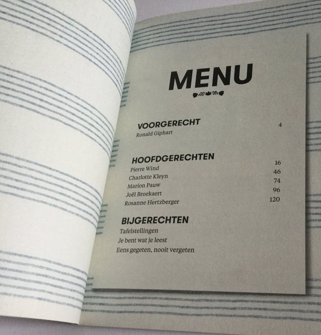 met bijdragen van Ronald Giphart, Marion Pauw, Pierre Wind en vele culinaire/literaire anderen. Een heerlijk boek vol sappige verhalen, verfrissende passages en een zoete afsluiter.
