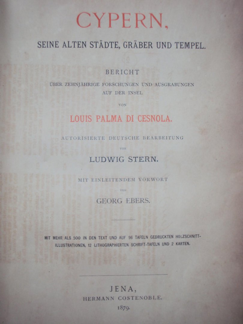 Ludwig Stern - Cypern, seine alten stadte, graber und tempel. Bericht uber zehnjahrige forschungen und ausgrabungen auf der insel von Louis Palma di Cesnola - Jena, Hermann Costenoble, 1879 - 433 pp half leather - 23,5 x 17 cm