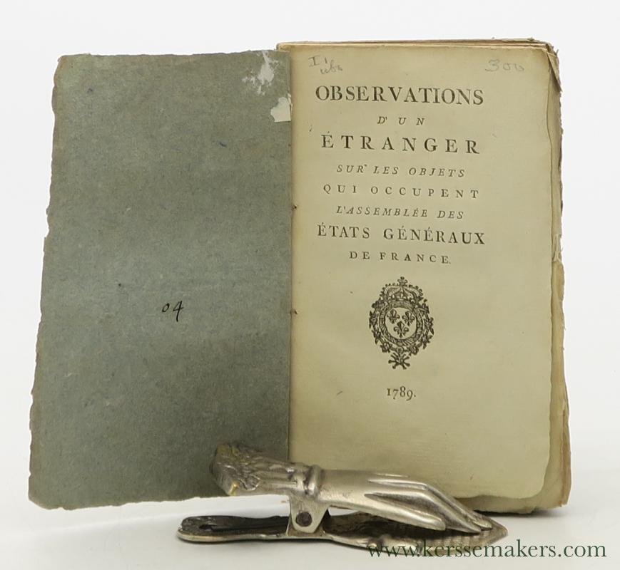 | Titel: | Observations d'un étranger sur les objets qui occupent l'Assemblée des États Généraux de France. |