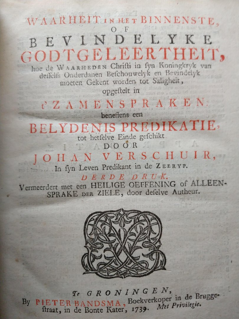 VERSCHUUR, Johannes - Waarheit in het binnenste of bevindelyke