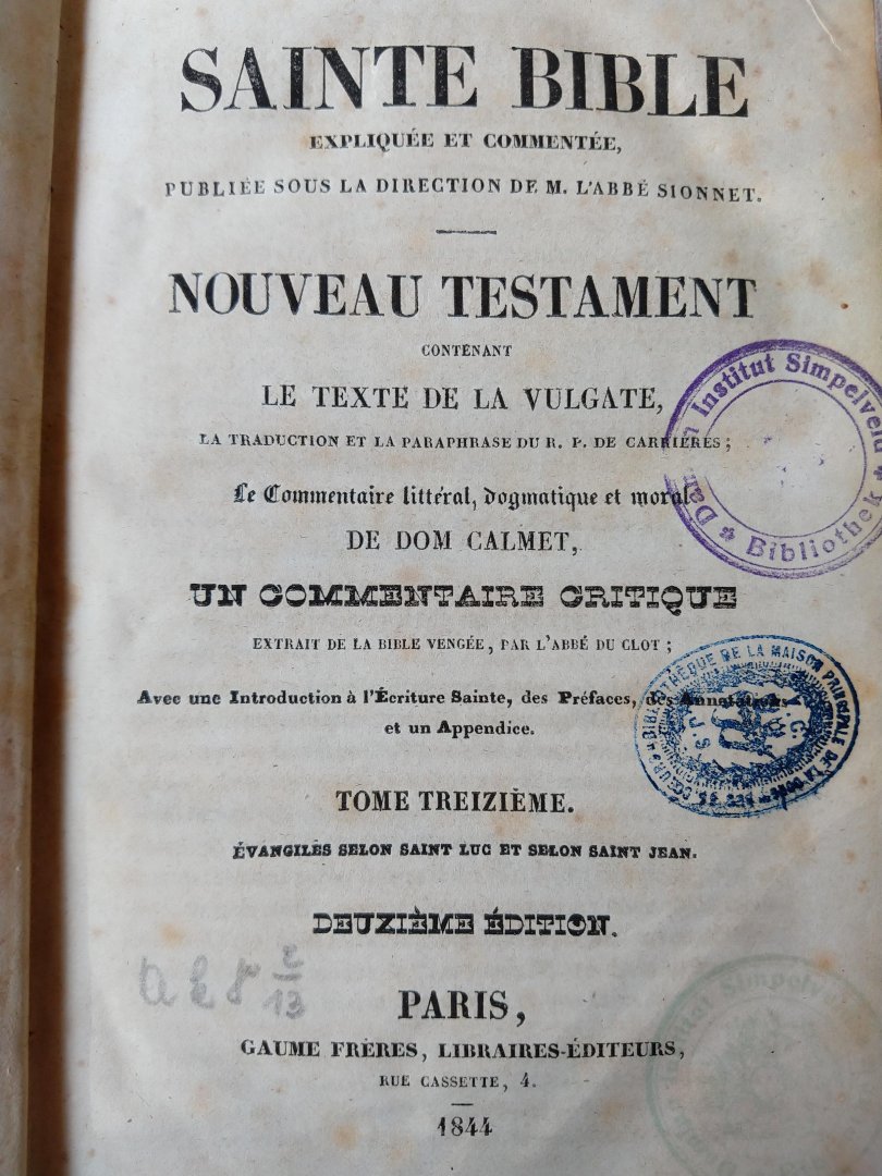| Titel: | Sainte Bible expliquée et commentée, contenant le texte de la vulgate, la traduction et la paraphrase du R.P. De Carrieres; des Commentaires littéral, dogmatique, moral, et un commentaire critique; Avec une Introduction, des Préfaces.. (partie 12+13) |