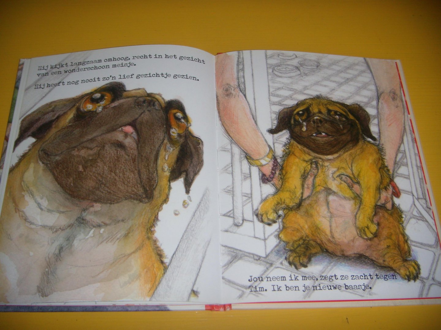 Het Mopshondje Tim zit in het asiel. Als het bezoekuur is, wordt de ene na de andere hond meegenomen. Alle bezoekers kiezen een dier dat bij hen past. Alleen Tim blijft achter, hij lijkt bij niemand te passen. Of toch? Tim wil een baasje laat zien dat zowel het beeldende als het vertellende talent van Jan Wolkers op zijn zoon Bob is overgegaan. |