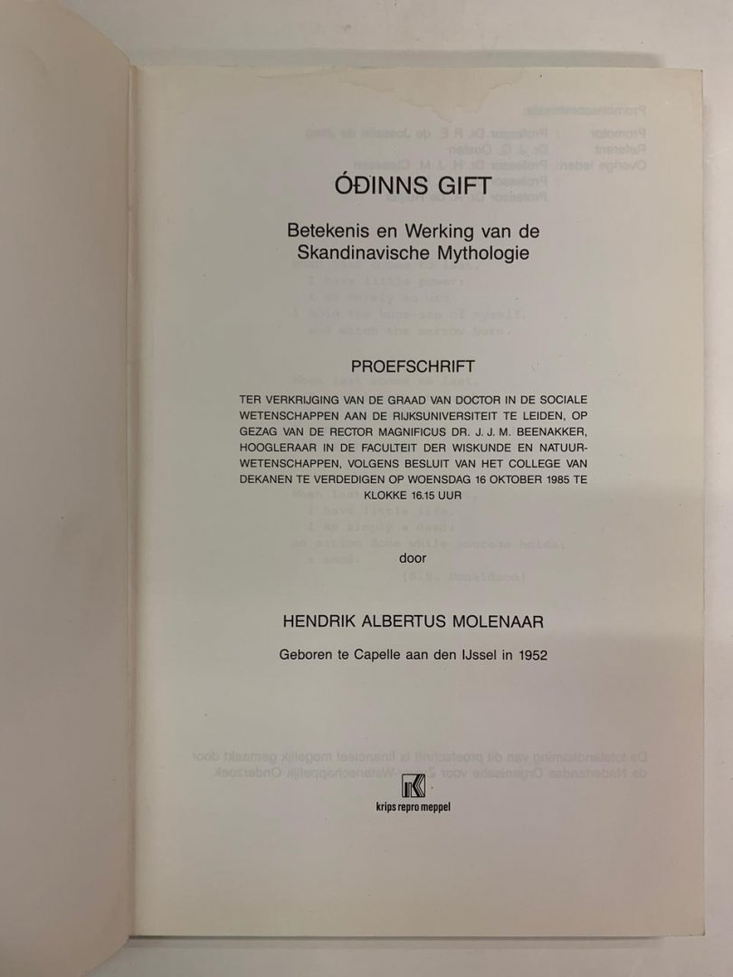 | Titel: | Odinns Gift ; Betekenis en Werking van de Skandinavische Mythologie |