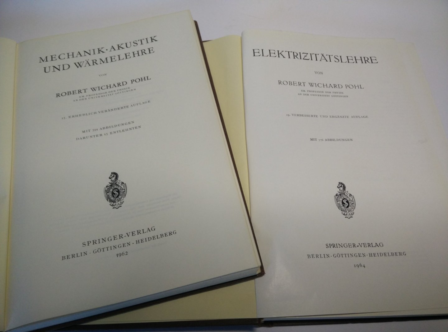 Drie delen: 1. Band: Mechanik, Akustik un Wärmelehre, 15. Auflage, 1962, 392 Seiten 2. Band: Elektrizitätslehre, 19. Auflage, 1964, 341 Seiten 3. Band: Optik und Atomphysik, 11. Auflage, 1963, 346 Seiten |