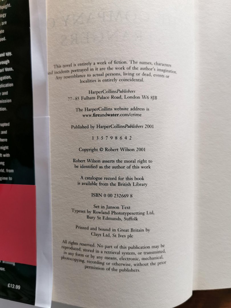Hoewel niet zijn bekendste werk, is deze "stand alone" roman van Robert Wilson wellicht zijn meest originele en zeker zijn meest ontroerende werk. Een prachtige, spannende en beklemmende roman met een melancholieke sfeer en een tragisch einde, dat de lezer lang bij blijft. In uitzonderlijk mooie staat.