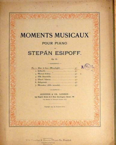 Esipoff, Stepán: - Moments musicaux pour piano. Op. 22. No. 1.