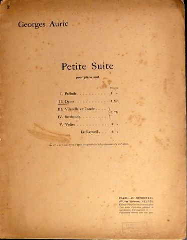 Auric, Georges: - Petite suite pour piano seul. II: Danse