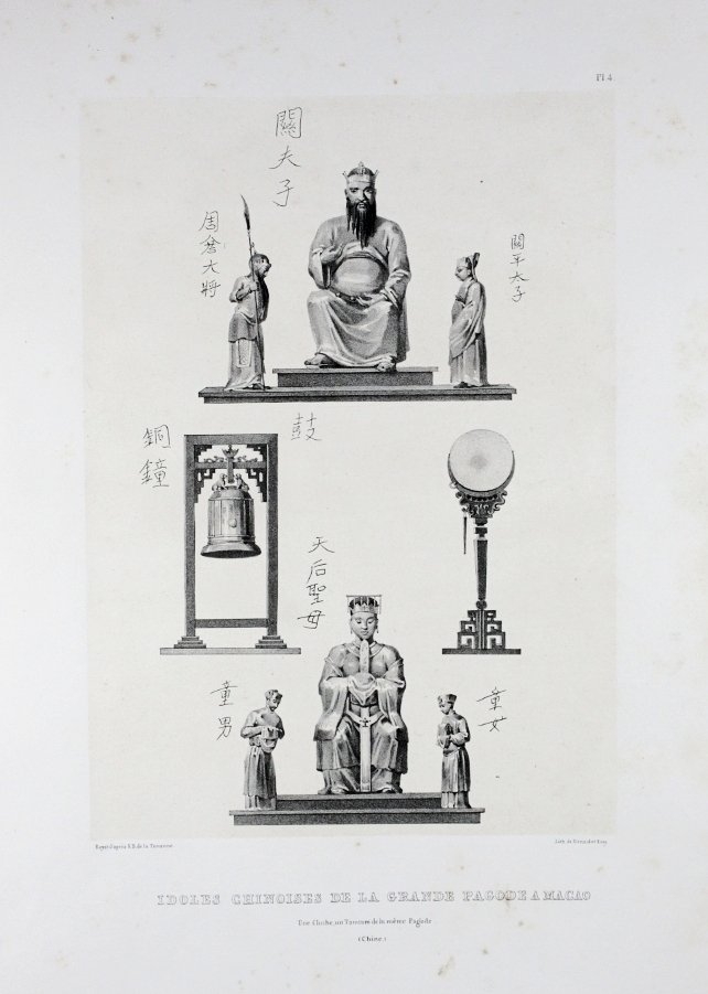 | Titel: | Idoles Chinoises de la Grande Pagode a Macao (une cloche,un tamtam de la même pagode) |