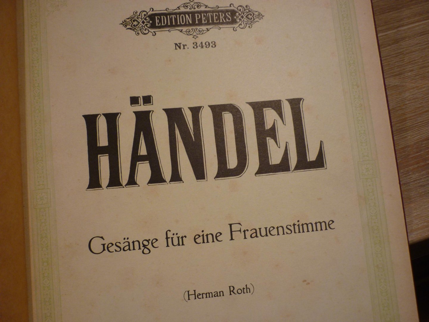 Arie für Sopran - aus der Cäcilienode HWV 76 Wie hebt und senkt Musik der Seele Flug [What passion cannot Music raise and quell] G-Dur Text: Dryden, John Besetzung: Sopran solo, Klavier Ariette der Esilena (Sopran) aus der Oper "Rodrigo" Sì che lieta goderò C-Dur Besetzung: Sopran solo, Klavier Arie der Armida aus der Oper "Rinaldo" Vo' far guerra e vincer voglio G-Dur Text: Rossi, Giacomo Besetzung: Sopran solo, Klavier Arie der Agilea aus der Oper "Teseo" Sì, t' amo, oh caro g-Moll Text: Haym, Niccolò Francesco Besetzung: Sopran solo, Klavier Arie der Melissa aus der Oper "Amadigi" Ah! spietato! e non ti muove e-Moll Besetzung: Sopran solo, Klavier Arie des Radamisto aus der Oper "Radamisto" Ombra cara di mia sposa f-Moll Text: Haym, Niccolò Francesco Besetzung: Sopran solo, Klavier Arie der Rossane aus der Oper "Floridante" O dolce mia speranza f-Moll Text: Rolli, Paolo Besetzung: Sopran solo, Klavier Arie des Ottone aus der Oper "Ottone" Ritorna, o dolce amore D-Dur Text: Rolli, Paolo Besetzung: Kontraalt, Klavier Arie der Teodata aus der Oper "Flavio" Che colpa è la mia A-Dur Text: Haym, Niccolò Francesco Besetzung: Alt solo, Klavier Arie der Irene aus der Oper "Tamerlano" Par che mi nasca in seno C-Dur Text: Haym, Niccolò Francesco Besetzung: Alt solo, Klavier Arie des Bertarido aus der Oper "Rodelinda" Con rauco mormorio Es-Dur Text: Haym, Niccolò Francesco Besetzung: Kontraalt, Klavier Arioso der Berenice aus der Oper "Scipione" Tutta raccolta ancor c-Moll Text: Rolli, Paolo Besetzung: Sopran solo, Klavier Arie der Rossane aus der Oper "Alessandro" - 2. Fassung L' armi implora dal tuo figlio G-Dur Text: Rolli, Paolo Besetzung: Sopran solo, Klavier Arie des Admeto aus der Oper "Admeto" Cangiò d' aspetto il crudo fato D-Dur Besetzung: Kontraalt, Klavier Szene und Arie des Siroe aus der Oper "Siroe" Son stanco, ingiusti Numi / Deggio morire, o stelle b-Moll Text: Metastasio, Pietro Besetzung: Kontraalt, Klavier Arie des Poro aus der Oper "Poro" Senza procelle ancora F-Dur Text: Metastasio, Pietro Besetzung: Kontraalt, Klavier Arie des Sosarme aus der Oper "Sosarme" Il mio valore, ch' albergo in petto g-Moll Text: Noris, Matteo Besetzung: Kontraalt, Klavier Szene und Arie des Orlando aus der Oper "Orlando" Imagini funeste / Non fù già men forte Alcide F-Dur Text: Braccioli Besetzung: Kontraalt, Klavier Rezitativ und Arie der Arianna aus der Oper "Arianna" Quel crudele / Se nel bosco resta solo a-Moll Text: Colman, Francis Besetzung: Sopran solo, Klavier Arie des Polinesso aus der Oper "Ariodante" Spero per voi, sì, sì F-Dur Text: Salvi, Antonio Besetzung: Alt solo, Klavier Arie des Ruggiero aus der Oper "Alcina" Mi lusinga il dolce affetto Es-Dur Besetzung: Sopran solo, Klavier Rezitativ und Arie der Galathea aus dem Oratorium "Acis und Galathea" O! Kenntest du die Qual [Oh! didst thou know the pains] / So wie die Taube [As when the dove] F-Dur Text: Gay, John Besetzung: Sopran solo, Klavier Arie für Sopran - aus dem Oratorium "Israel in Ägypten" Du ließ't wehn deinen Wind [Thou didst blow with the wind] Es-Dur Besetzung: Sopran solo, Klavier Arie für Sopran - aus dem Oratorium "Der Messias" - 2. Fassung Steh auf, steh auf mit Freuden [Rejoice, rejoice,rejoice greatly] B-Dur Besetzung: Sopran solo, Klavier Arie des Micha aus dem Oratorium "Samson" HWV 57 - 2. Fassung O Wechsel unerhört [O change beyond report] / O Abbild der Hinfälligkeit [Oh mirror of our fickle state] f-Moll Text: Hamilton, Newburgh Besetzung: Alt solo, Klavier Szene und Arie der Nitocris aus dem Oratorium "Belsazar" HWV 61 Falsch, unbeständig Los [Vain, fluctuating state] / Du, Gott der Höh [Thou, God most high] e-Moll Text: Jennens, Charles Besetzung: Sopran solo, Klavier Arie der Jöle aus dem Oratorium "Heracles" Mein Vater! Ach! Mich dünkt [My father! ah! methinks] Es-Dur Text: Broughton, Thomas Besetzung: Sopran solo, Klavier Arie für Alt - aus dem Oratorium "Judas Maccabäus" HWV 63 Vater des Alls [Father of Heav'n] F-Dur Text: Morell, Thomas Besetzung: Alt solo, Klavier Arie des Othniel aus dem Oratorium "Josua" HWV 64 Wenn der Held nach Ruhme dürstet [Heroes, when with glory burning] F-Dur Text: Morell, Thomas Besetzung: Kontraalt, Klavier Rezitativ und Arie des Didymus aus dem Oratorium "Theodora" Drückte sie Gram? [Or lull'd with grief] / Süß' Ros' und Lilie [Sweet rose and lily] Es-Dur Text: Morell, Thomas Besetzung: Alt solo, Klavier |