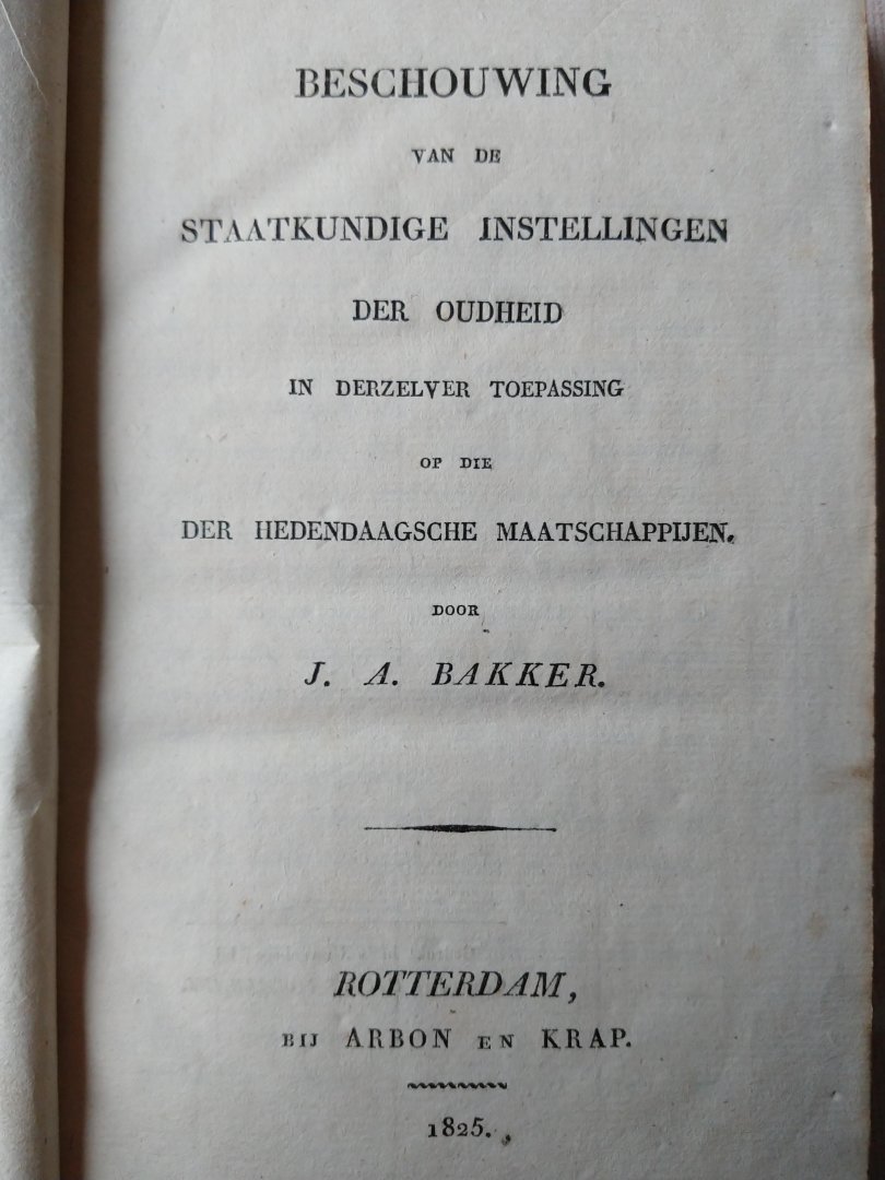 Bakker, Job Augustus - Beschouwing van de staatkundige instelli