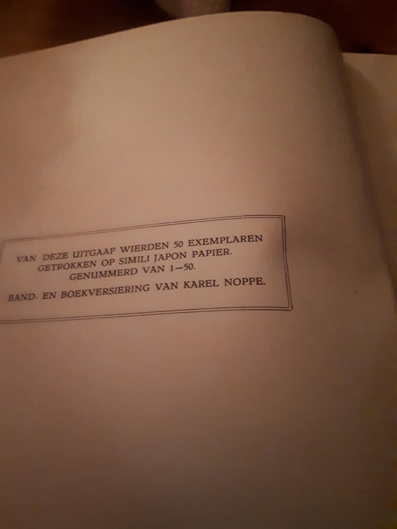 Van deze uitgaaf wierden 50 exemplaren getrokken op stimuli japon papier Genummer1 t/m 50 Dit is nr 9 |