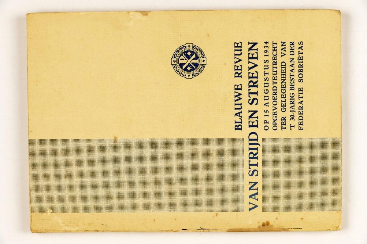 | Titel: | Blauwe Revue van strijd en streven op 15 augustus 1934 opgevoerd te Utrecht ter gelegenheid van 't 30-jarig bestaan der federatie Sobriëtas (2 foto's) |