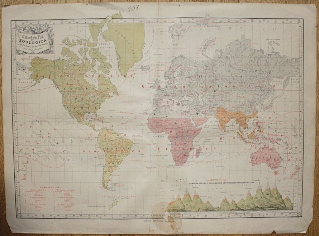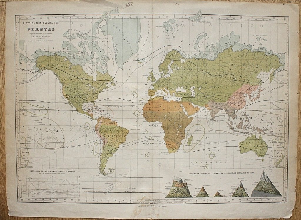 | Titel: | 3 thematic world maps: Densidad de la poblacion terrestre / Geografia zoöligica / Distribucion geográfica de las plantas |