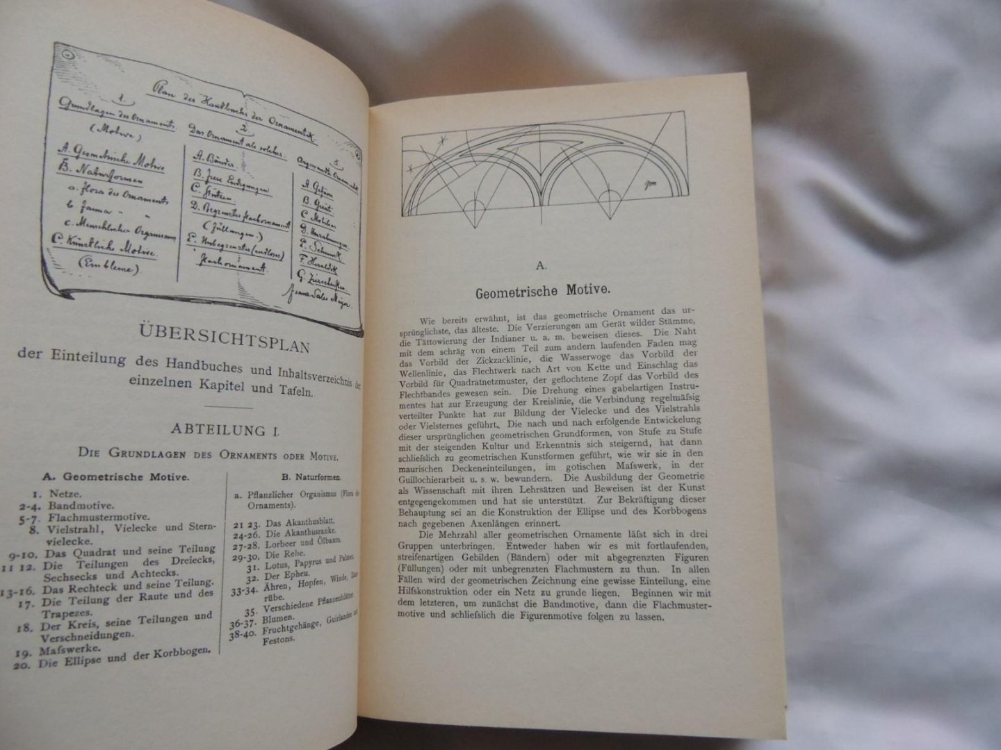 | Titel: | illustriertes Handbuch der Ornamente Ornamentik: Systematisch geordnetes. Zum Gebrauche für Musterzeichner, Architekten, Schulen und Gewerbetreibene sowie zum Studium im Algemeinen. Mit 3000 auf 300 Tafeln zusammengestellten und in den Text gedruckte |