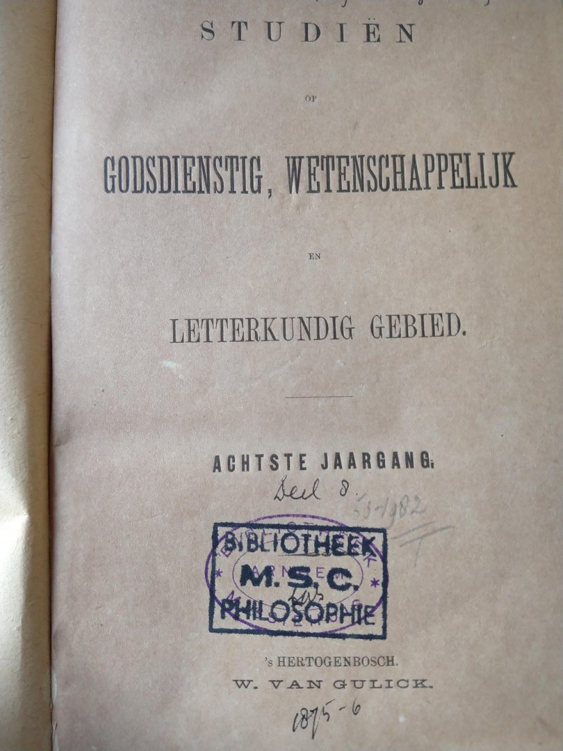 | Titel: | Studien: Verzamelde werken van beroemde en bekende schrijvers op het gebied van Godsdienstig, wetenschappelijk en letterkundig gebied. (9 delen) |