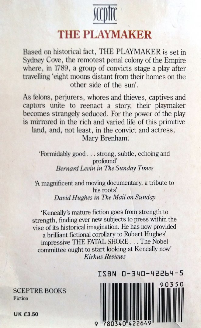 (Sceptre) ISBN 0340422645 uitgave uit 1988 364 pp pocket (pp wat verkleurd, verder goed!) Staat van het boek: 7.5 Keneally's magnificent story of a young officer in a penal colony during the founding days of Australia transports readers through layer after layer of life in Sydney Cove, Australia. Prijs €4,- |