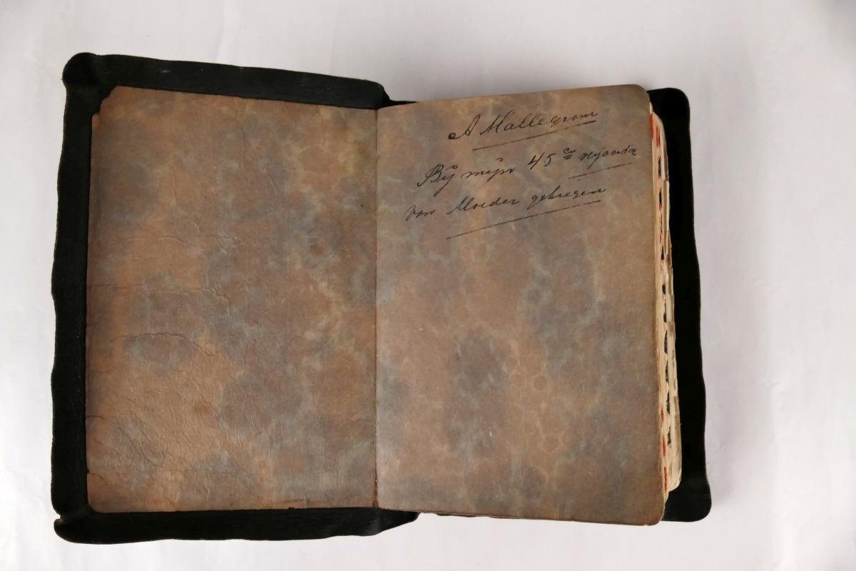| Bijzonderheden: | 1885-1910, goed, zachte kaft met zwarte leren kaft, goudkleurige bladsnede,psalmen zangboek, 2 bladzijden ontbreken, aantekening op schutblad |