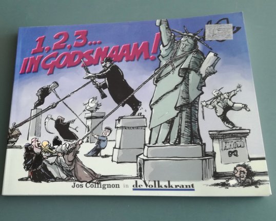 1, 2, 3… in godsnaam bevat een keuze uit Collignons beste politieke tekeningen zoals die in 2003 op de opiniepagina van de Volkskrant verschenen.