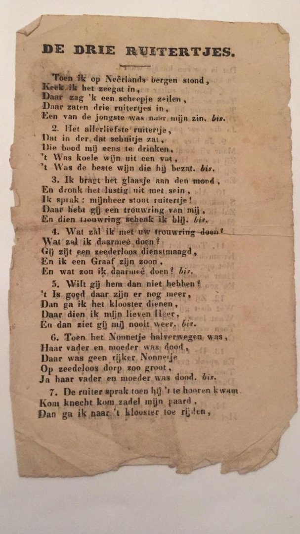 ![[Liedtekst/Song] - De Drie Ruitertjes. Toen ik op Neerlands bergen stond, keek in het zeegat in. Daar zag 'k een scheepje zeilen, Daar zaten drie ruitertjes in. Een van de jongste was naar mijn zin. Bis. 1 p. [Liedtekst/Song] - De Drie Ruitertjes. Toen ik op Neerlands bergen stond, keek in het zeegat in. Daar zag 'k een scheepje zeilen, Daar zaten drie ruitertjes in. Een van de jongste was naar mijn zin. Bis. 1 p.](https://images.boekwinkeltjes.nl/medium/OsjXKQ2IIkfGqj533Lbm.jpeg)