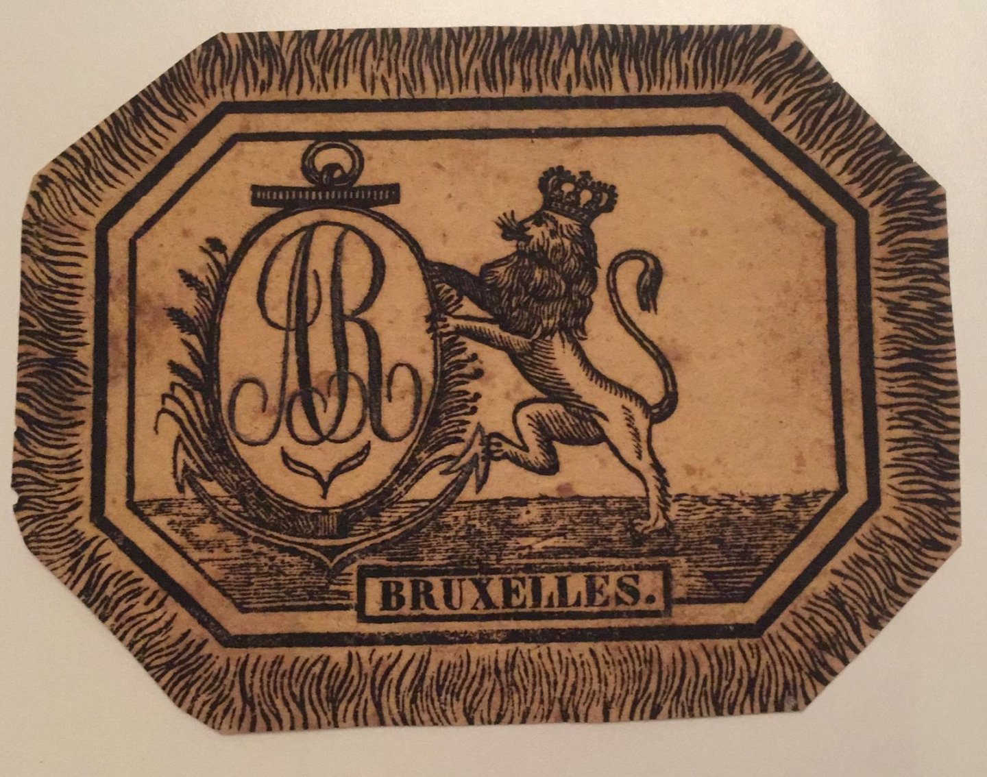 | Titel: | Vignet with Bruxelles printed in the text underneath a lion holding an oval with the letters A.R., 1 p. |