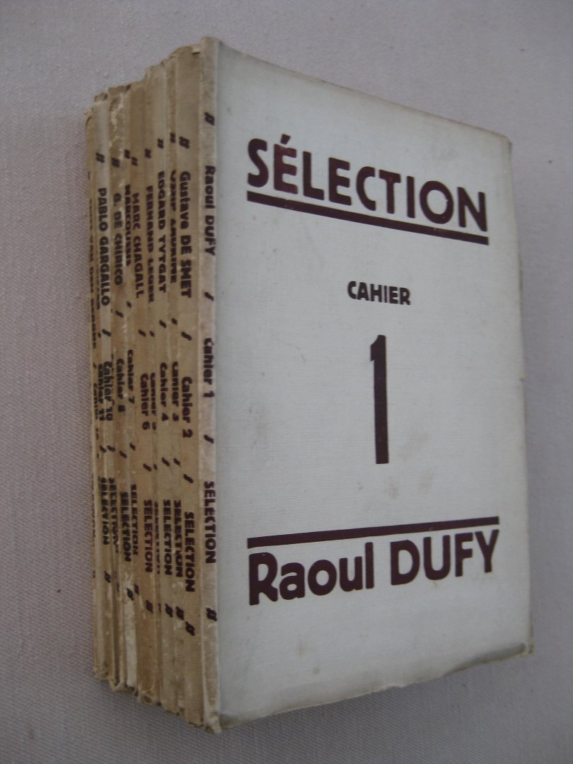 De volledige reeks "Cahiers" - gepubliceerd tussen 1928 en 1933 van het tijdschrift "Sélection. Chronique de la vie artistique" gesticht en geleid door André de Ridder. Respectievelijk gewijd aan: 1. Raoul Dufy, 2. Gustaaf De Smet, 3. Ossip Zadkine, 4.Edgard Tytgat, 5. Fernand Léger, 6.Marc Chagall, 7.Louis Marcoussis, 8.Giorgio de Chirico, 9.Marcel Gromaire, 10.Pablo Gargallo, 11. Willy Baumeister, 12. Frits Van den Berghe, 13. Eqward Wadsworth en 14. Wassily Kandinsky.