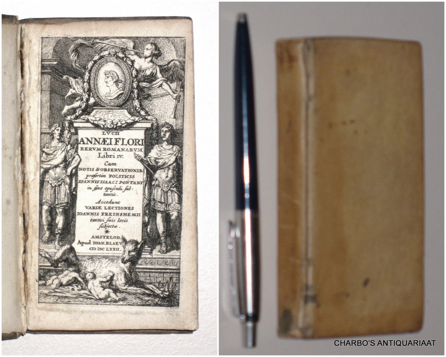 | Titel: | Lucii Annaei Flori, Rerum Romanarum libri IV. Cum notis & observationib. praesertim politicis Joannis Isaaci Pontani ... Accedunt variae lectiones Joannis Freinshemii. |