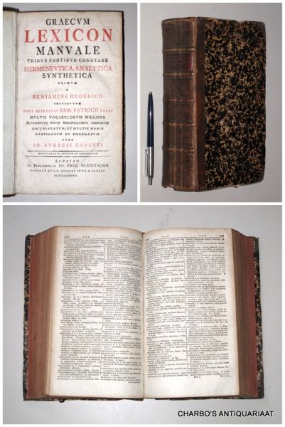 ![HEDERICO, BENIAMINE [HEDERICH, BENJAMIN], - Graecum lexicon manuale. Tribus partibus constans hermeneutica, analytica, synthetica, primum a Beniamine Hederico institutum, post repetitas Sam. PatricII curas, multis vovabularum millibus plurimisque novis significatibus verborum locupletat... HEDERICO, BENIAMINE [HEDERICH, BENJAMIN], - Graecum lexicon manuale. Tribus partibus constans hermeneutica, analytica, synthetica, primum a Beniamine Hederico institutum, post repetitas Sam. PatricII curas, multis vovabularum millibus plurimisque novis significatibus verborum locupletat...](https://images.boekwinkeltjes.nl/medium/MRS6TAAOWAhI370sOhh0.jpg)