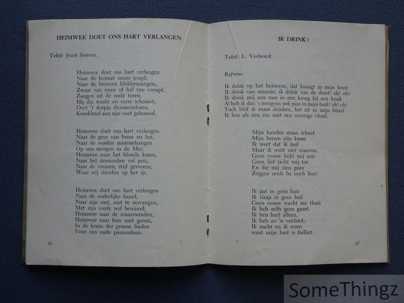 | Meer info: | Liedernbundel, met teksten van Jozef Simons, Eugeen de Ridder, Jan Custers e.a. |
