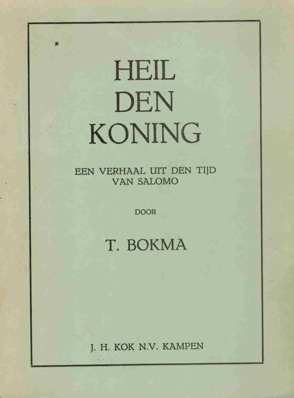 Heil den koning door T. Bokma is een verhaal uit de tijd van koning Salomo en koning Jerobeam. Het boek bevat Jerobeams historie tot op zijn kroningsdag, de historie dus van zijn opgang en verhoging. |